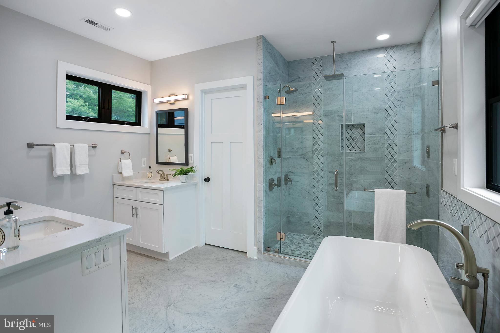 With 8 spacious bedrooms and 6.5 bathrooms, the home features 10-foot ceilings on the main level, enhancing the sense of space and light. Enjoy the convenience of two primary suites, one on each floor, and dual laundry facilities strategically located for ease and efficiency.